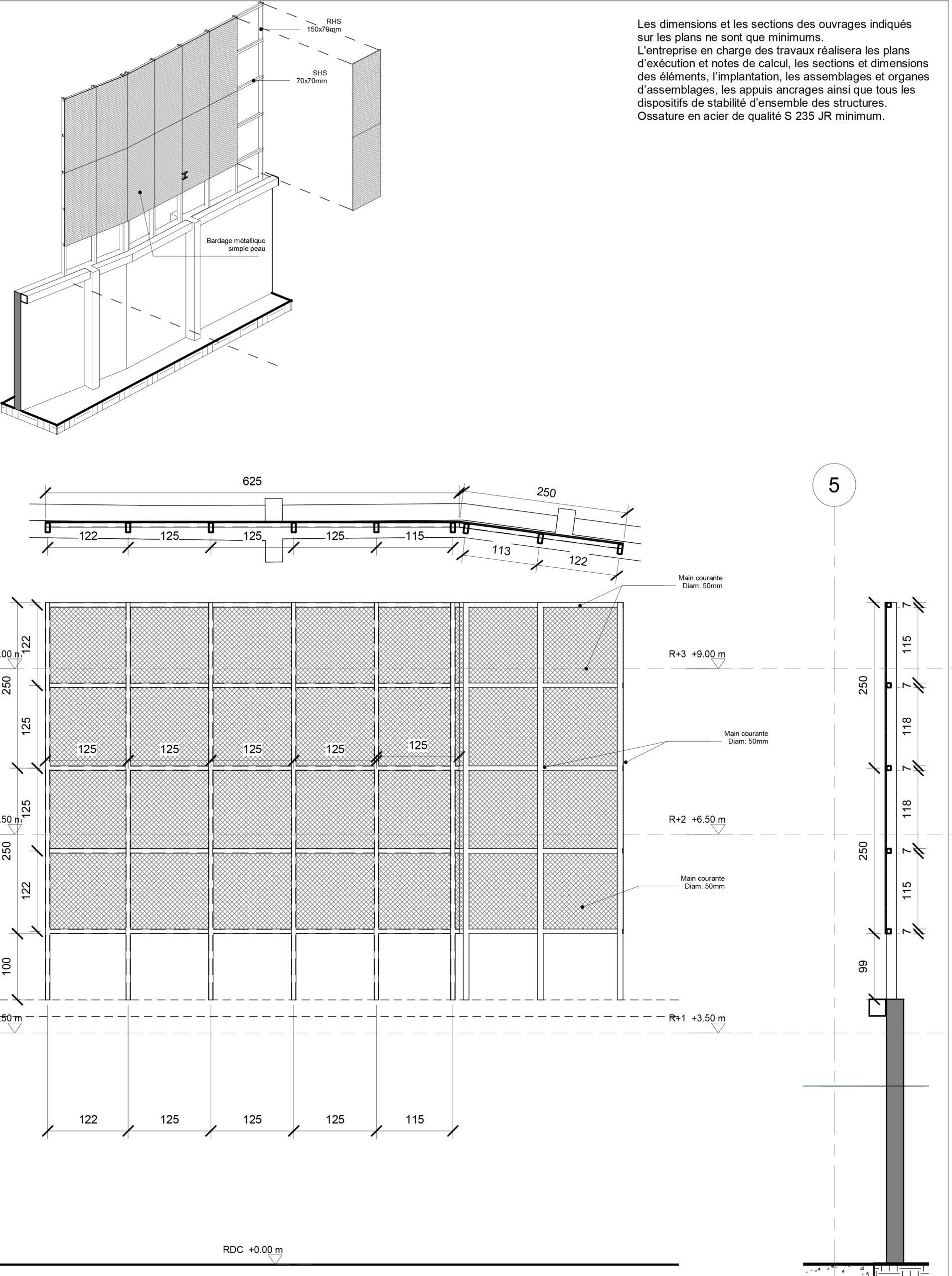 Cette dernière, qui mesure une dizaine de mètres de haut, compte cinq demi-paliers, ce qui correspond à un R + 3.